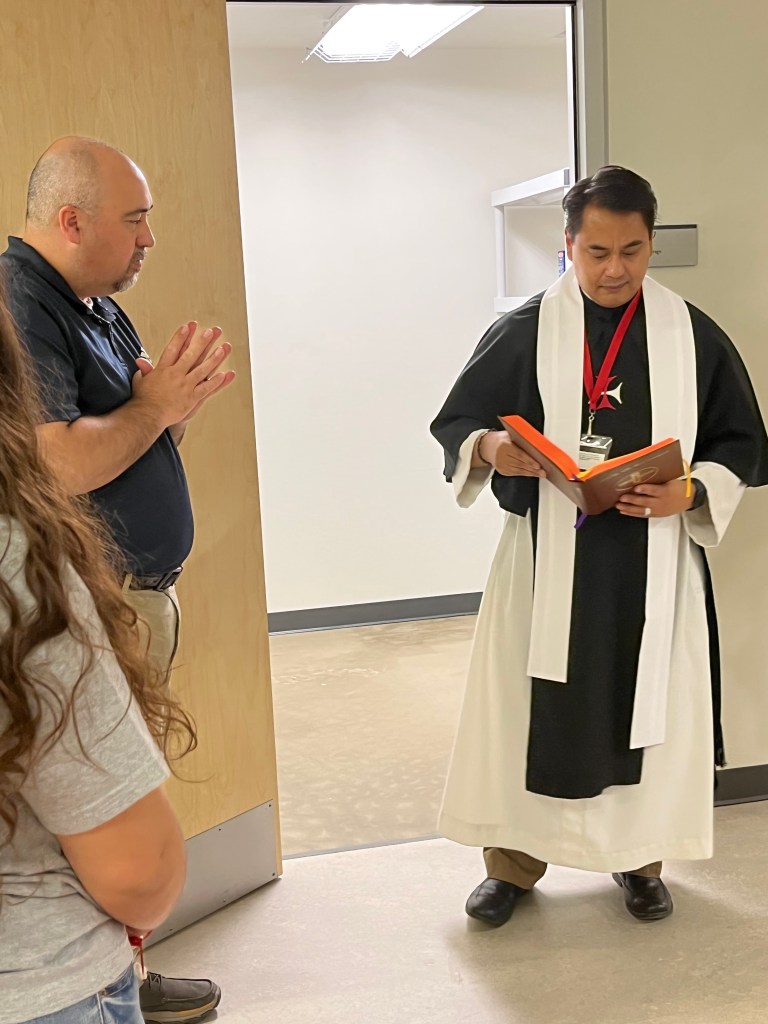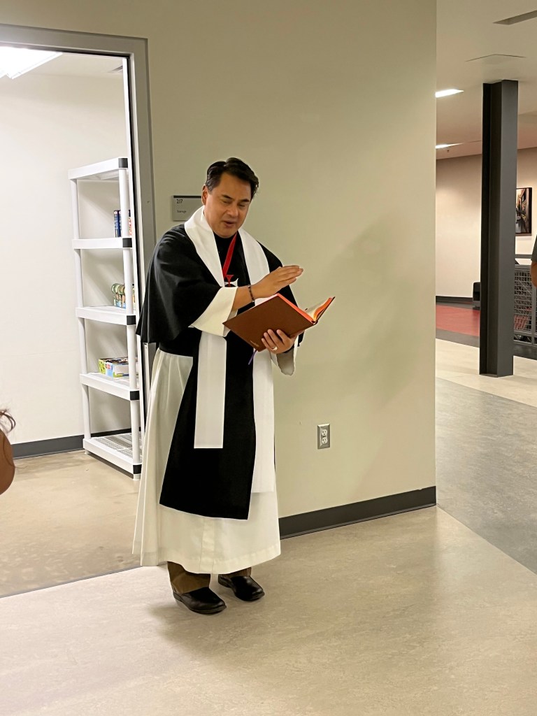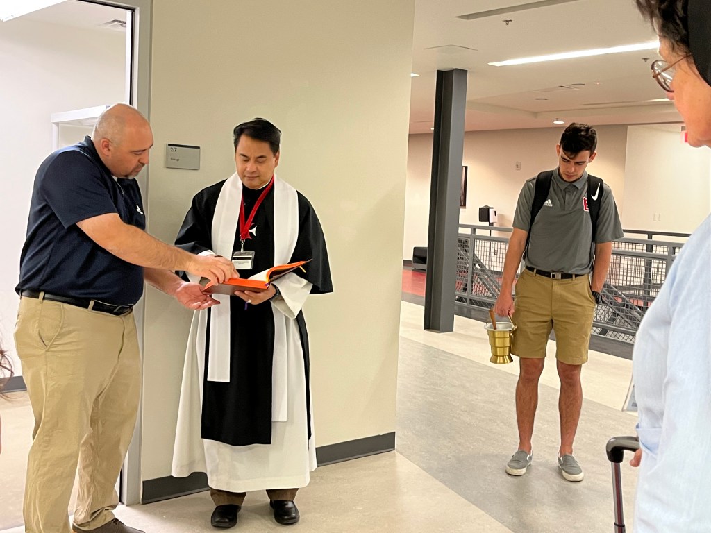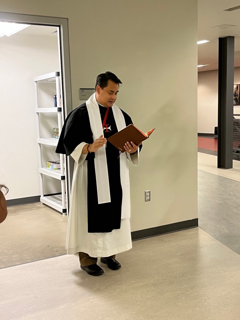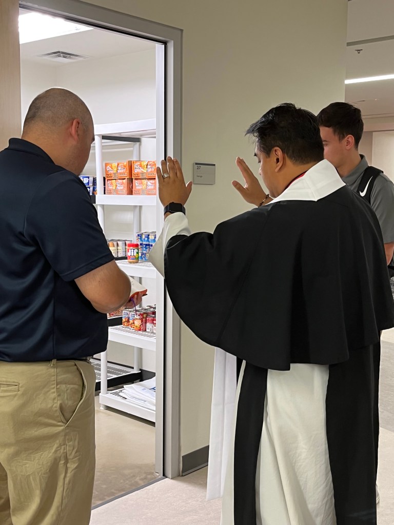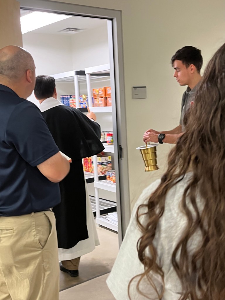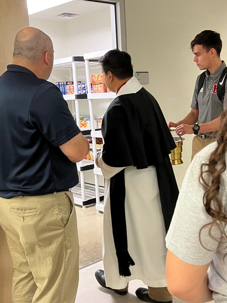 On Oct. 6 2022, the Benedictine Food Pantry was blessed by our campus Chaplin, Father Alex, along with our campus minister, Rob.