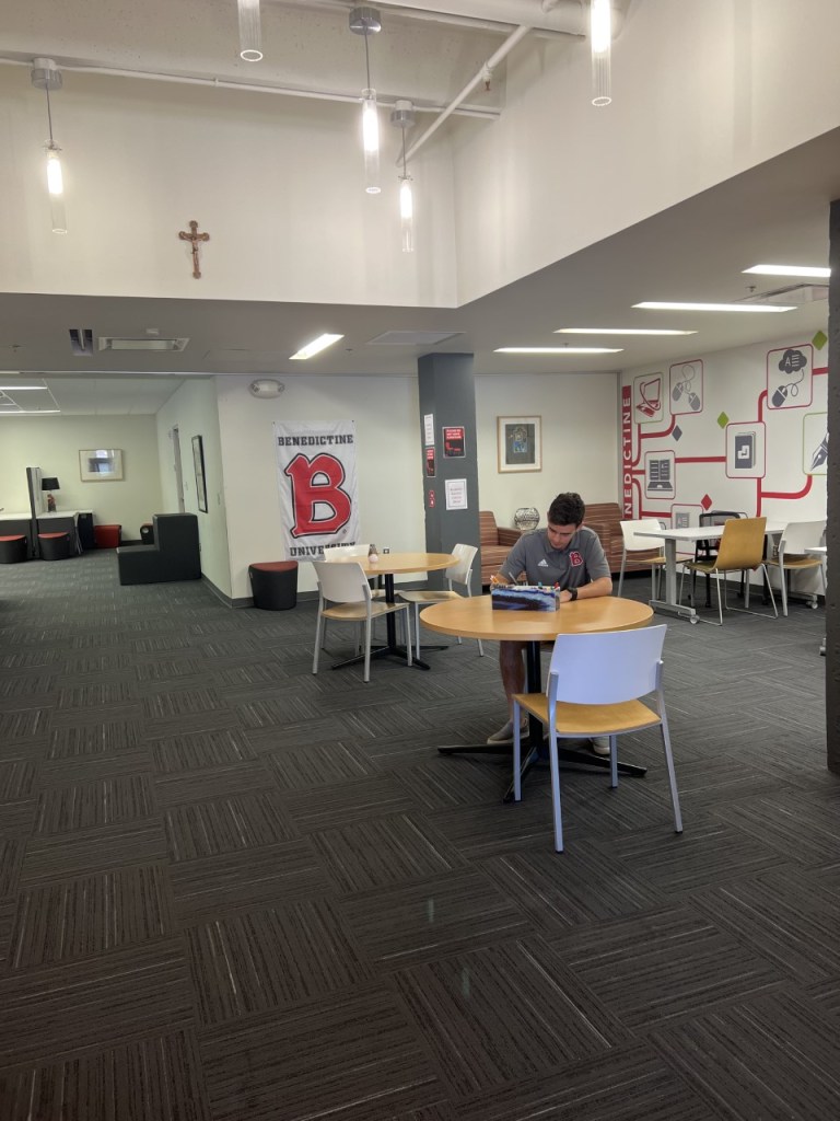 Benedictine is a small community and the faculty is trying to bring everyone more together starting with classes. Most people after class go right home to do homework, but now you can go over and get food, eat and do homework right at the school with fellow classmates. The Student Success Center is where the library was located, past the fish bowl and right after the snack bar. When you walk in, there are multiple different places to start your homework at. If you don’t have a computer, there are computers provided. If you work better at a desk, there are desks, or even just some comfy chairs.