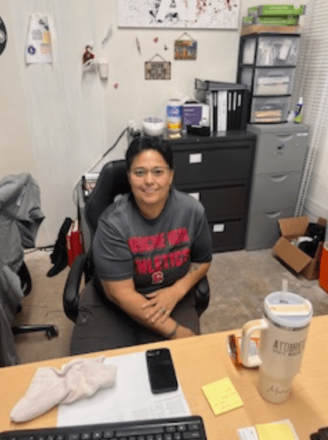 Brianna Rivera, assistant director of student services; Nichole Perry, sports information director; and Raenisha Willis, game day operations and assistant women’s basketball coach, run the donation drive on Oct 17. Photo by Daily Ben staff member Malik Payton.